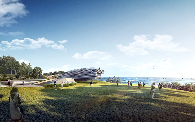 建筑设计以人民为中心,把最好的资源留给市民游客。市民可以在屋顶眺望山海城美景,屋顶、海洋科普展厅及服务驿站完全开放给公众,给市民创造了一个更好的观海与科普休闲场所。