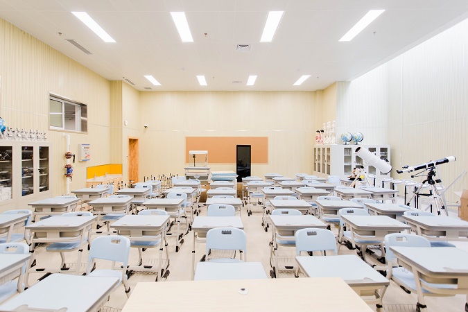 校园同时配置了1000平方米的风雨操场,以及可供600名师生同时进餐的餐厅。